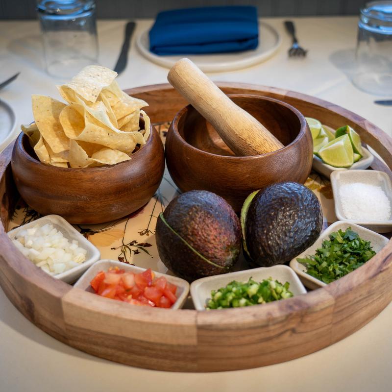 Cilantro, onions, jalapeños, tomatoes. Tableside